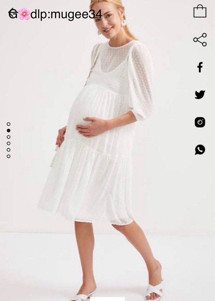 Bir kez gıyılmıstır etiketli degıldir.Fotograf çekimi için bile kullanabileceginiz. Günlük elbise. M beden Beyaz renk içi astarli hamile elbisesi. Yarim kol, diz alti kollari tüldür fotograflarda göruldügü gibi.içi disi ayridir yani fermuarli arkasinda dügmesi vardir.