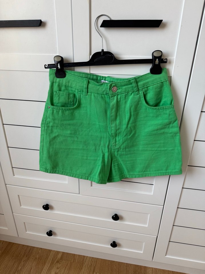 Nefes alabilen %100 pamuk kumaştan, yüksek bel,yeşil kot şort. Hiçbir defosu , kusuru yoktur.