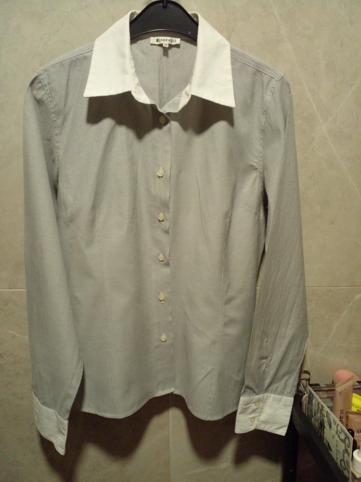 Pamuk kumaştan yapılmış, düğmeli önden ve beyaz yakalı gri renkli, uzun kollu, normal kesim kadın gömleği. Ofis için uygundur. #kadın #giyim #kadıngiyim #gömlek #kadıngömlek #defactogömlek #defacto #koton #lcw #zara #mango #H&M #trendyolmilla #bershka #collezione #kikiriki #diğer #vintage #americanvintage #vintageürünleri #gri #40beden #Lbeden