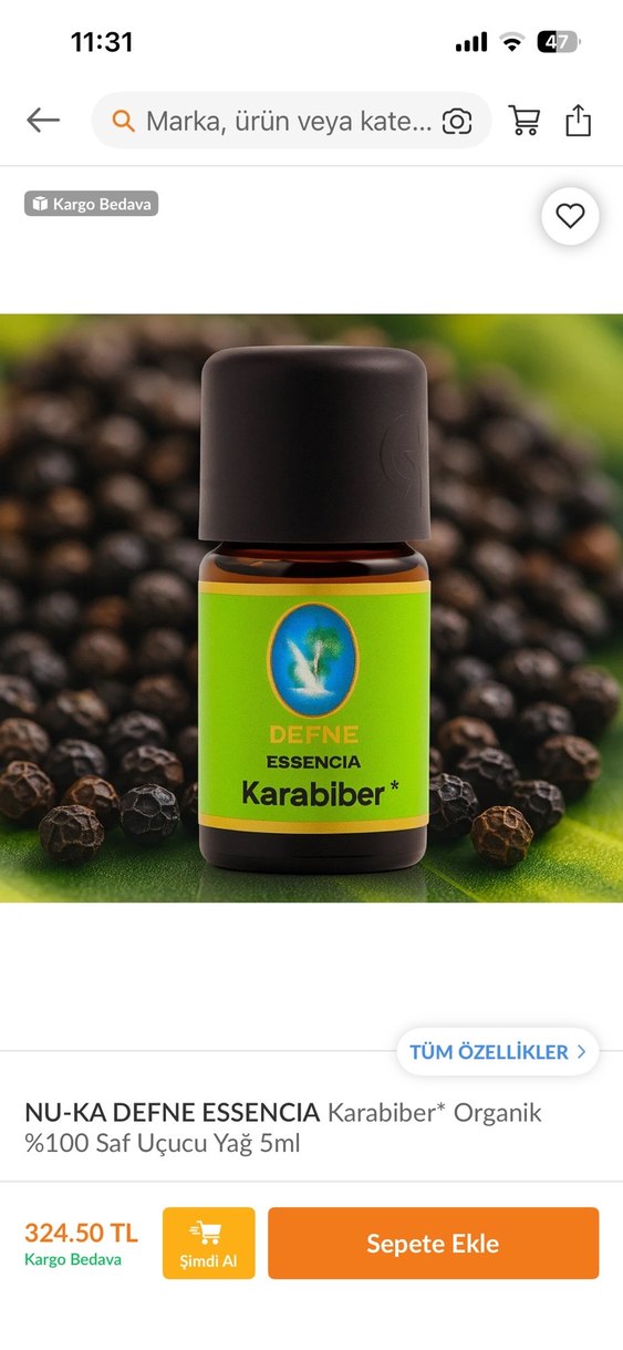 DEFNE Essencia Karabiber Uçucu Yağı