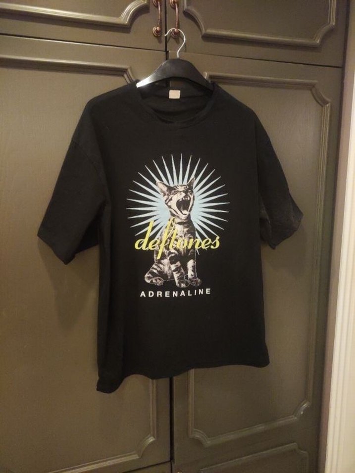 Siyah, kısa kollu, yuvarlak yakalı tişört. Boy 76 En 56 rock punk metal
