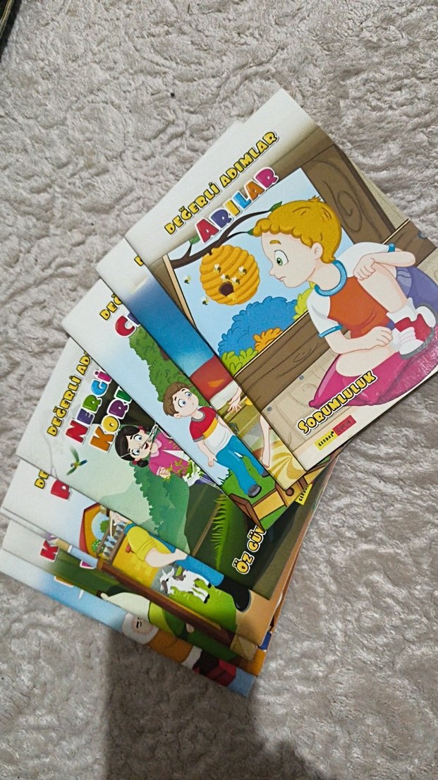 "Değerli Adımlar" adlı, çocuklar için renkli ve ilgi çekici hikayeler içeren kitap seti.
