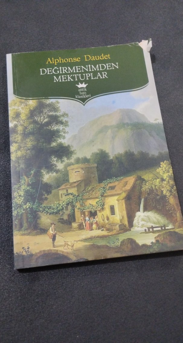 Alphonse Daudet'in "Değirmenimden Mektuplar" adlı kitabı, sakin kırsal manzaralı kapakla klasik mektuplar içerir.