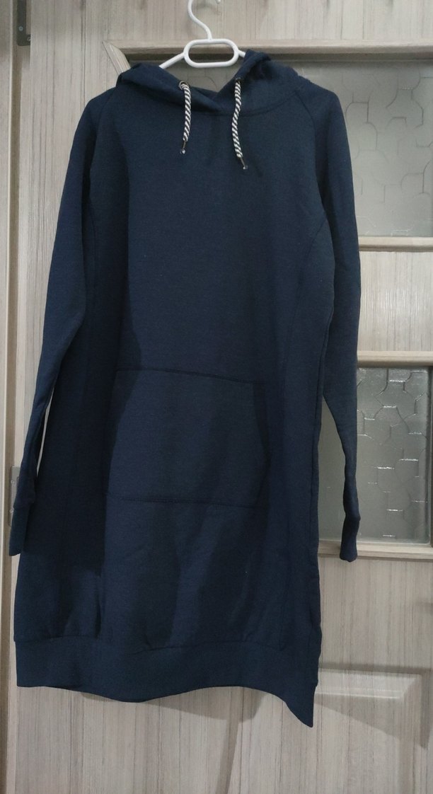 2 iplik Kadınlar için kapüşonlu, uzun kollu, bol kesim lacivert tunik Düz renk ve ön cepli, rahat sokak stiliyle uyumlu.