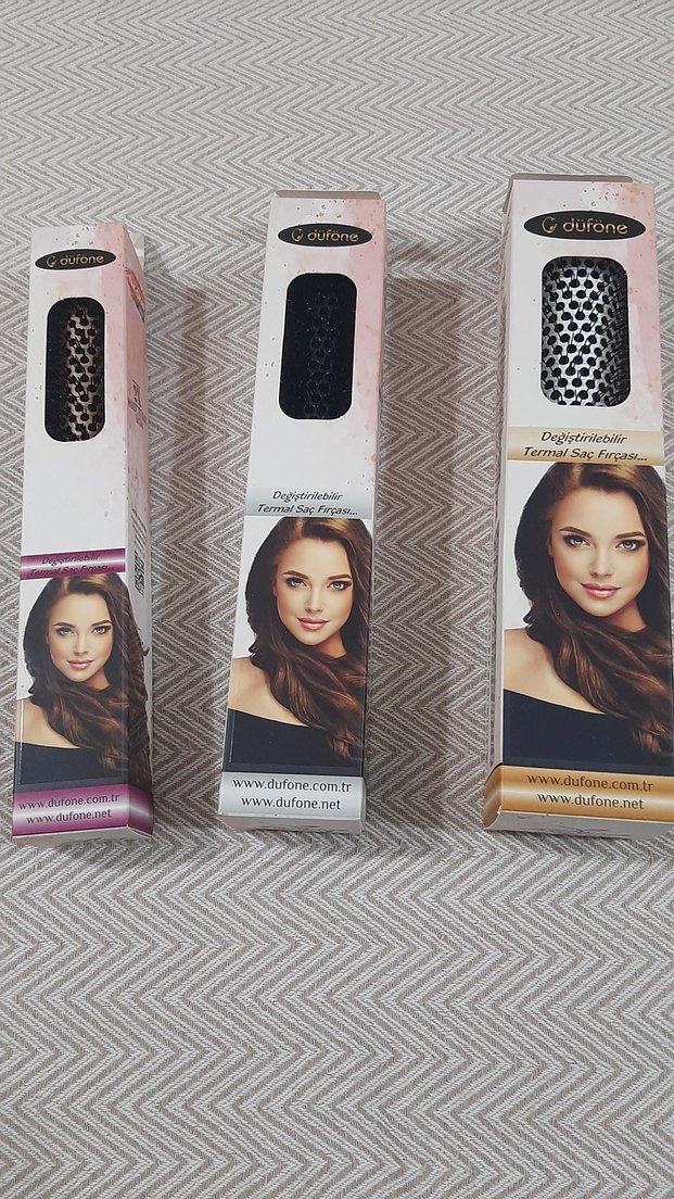 Değiştirilebilir başlıklı termal saç fırçaları, farklı boy ve renk seçenekleriyle saç şekillendirmeye yardımcı olur.
