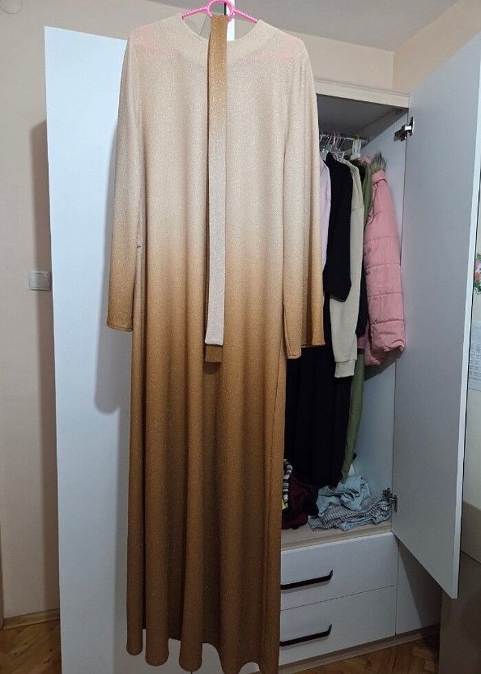 vücudu saran güzel bir durusu var kemeri ile göndereceğim sadece bir iki kez giyildi degrade renk geçişli ve simli hiçbir kusuru yok
