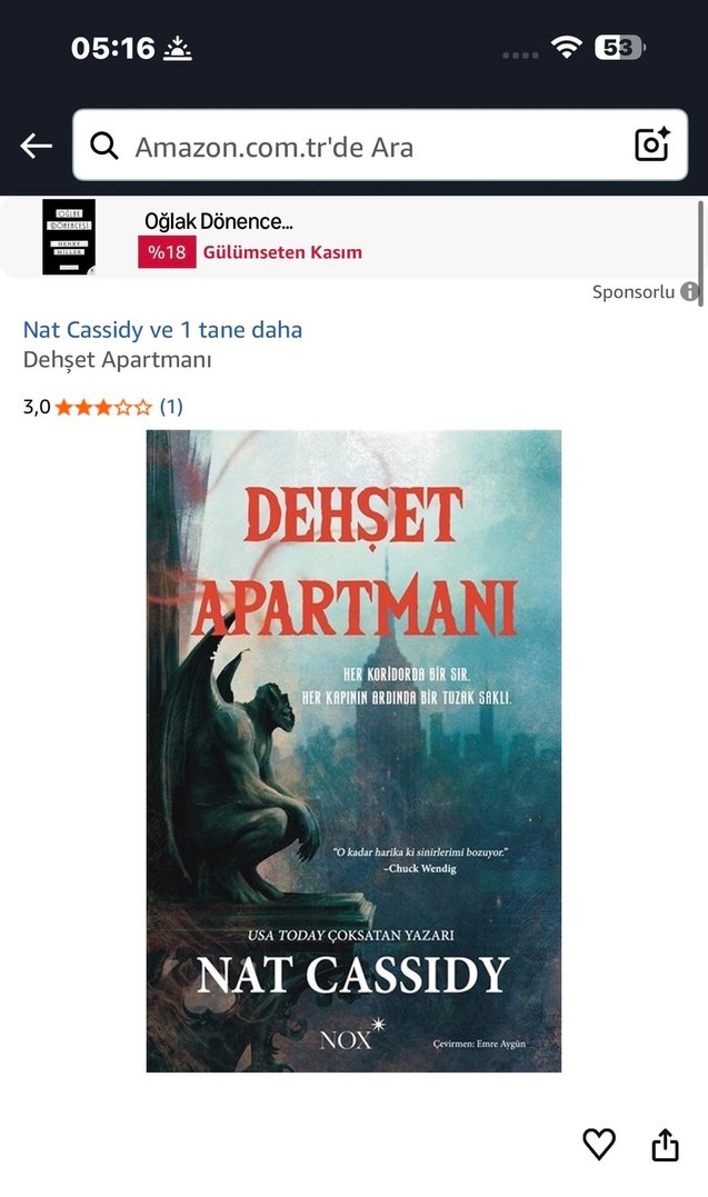 Nat Cassidy'nin Dehşet Apartmanı, her koridorun bir sır, her kapının bir tuzak sakladığı gerilim dolu bir roman. Sıfırı 330 tl