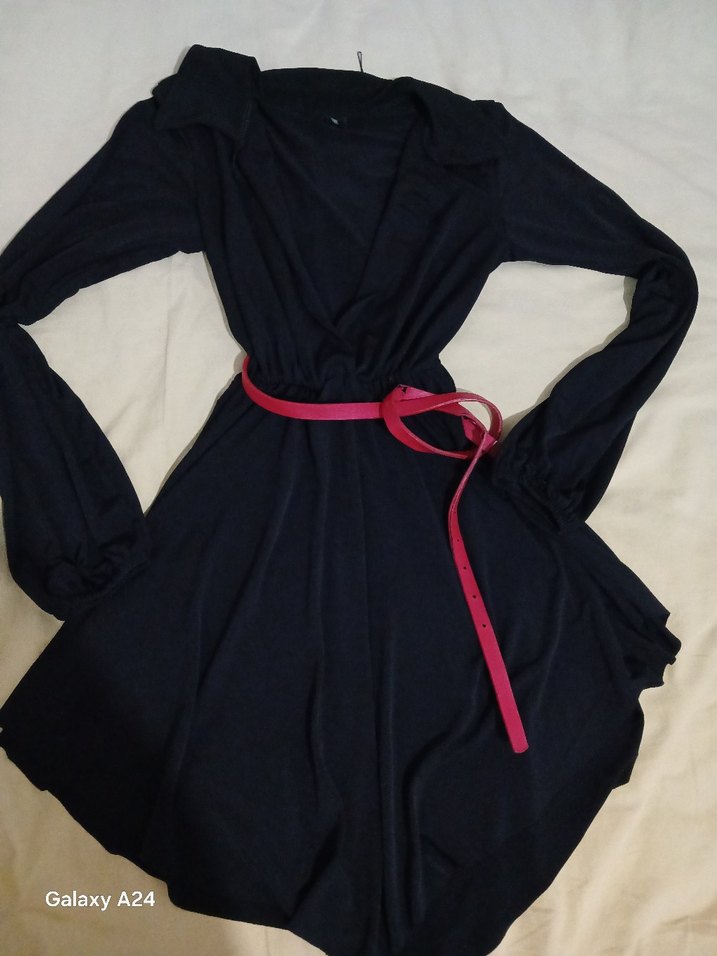 v yakalı bilekleri lastik detaylı balon ve uzun kollu ince ve kullanışlı kumaştan asimetrik kesimli mini elbise. kemer ürüne dahil değildir. isteyenler için 75 tl