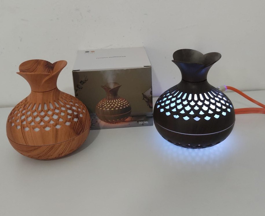 Dekoratif tasarımlı, yumuşak ışıklı, 300 ml kapasiteli kahverengi hava temizleyici ve nemlendirici. ️