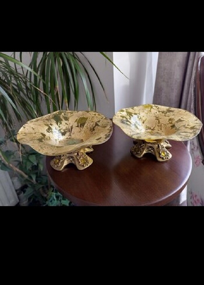Dekor, şekerlik vb çok amaçlı kullanılabilen iki üründür. Yaldız, işleme vb herhangibir hasar yoktur. Genislik 17 cm, yükseklik 9 cm.dir.