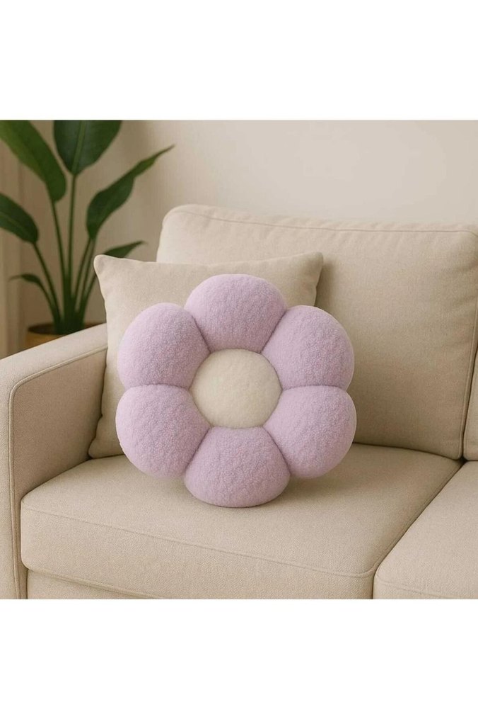 Pastel lila renkte, yumuşak ve sıcak papatya şeklinde kırlent yastık. Desensiz tasarımıyla her odaya sıcaklık katar. Rahatlık ve dekor için uygundur. ️