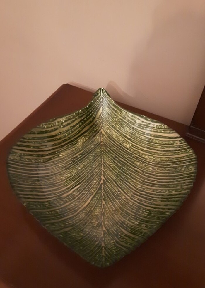 Yaprak şeklinde dekoratif tabak. Renkli.