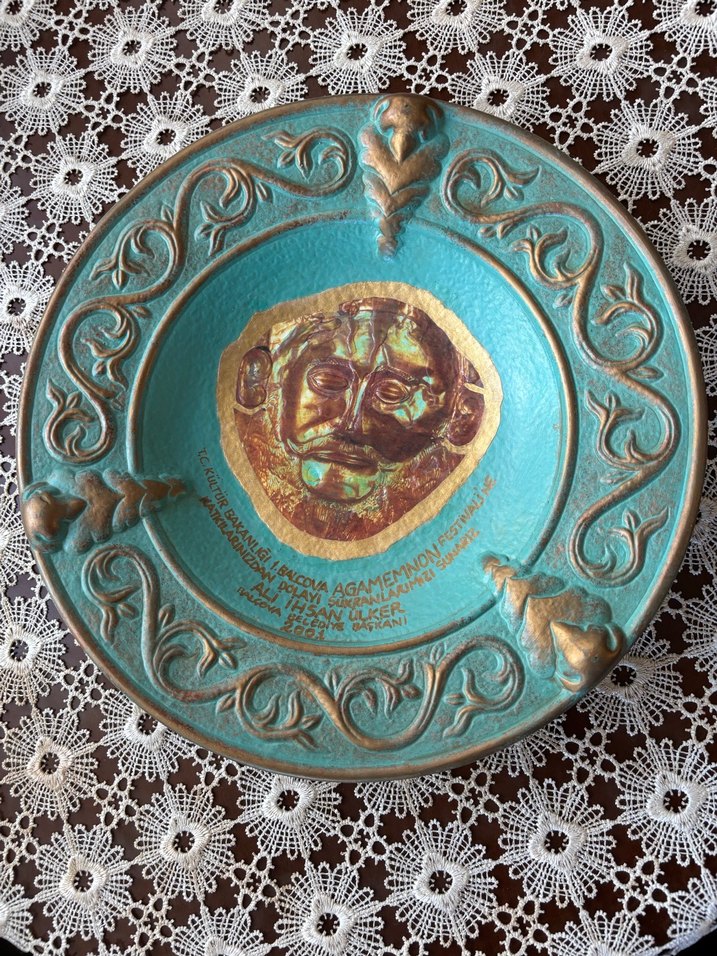 Seramik elde çalışma seramik tabak hediye geldi hiç kullanılmamıştır 2001 yılına ait retro ürün 27 santim çapında