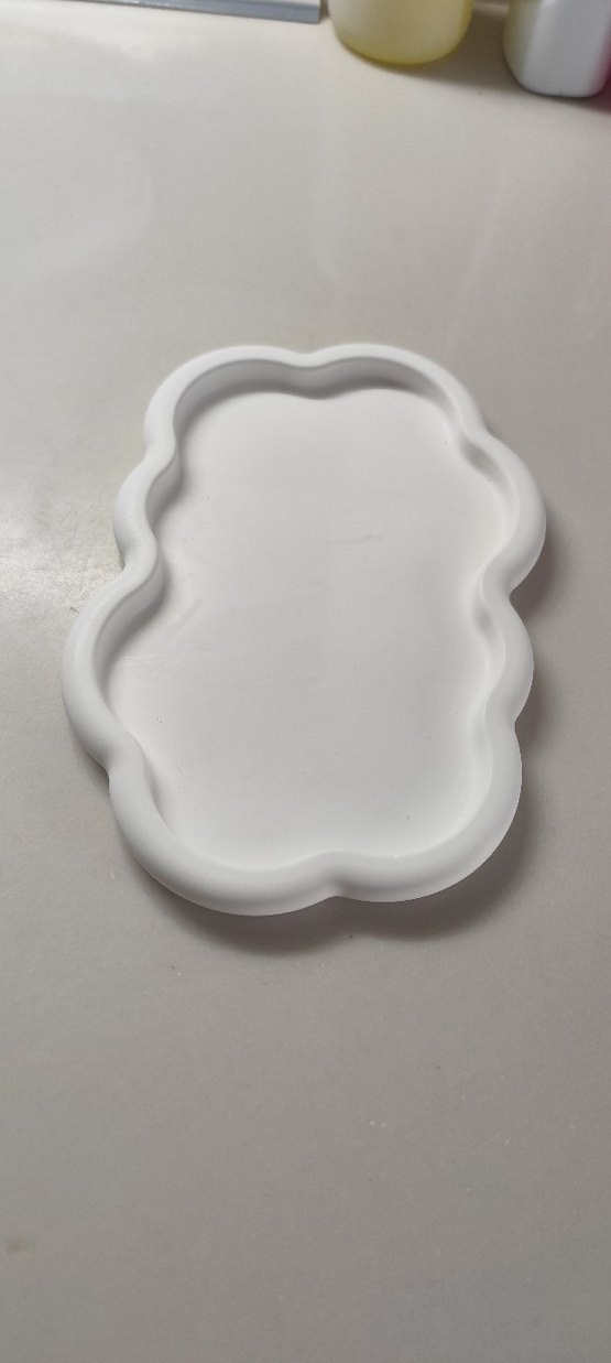 Dalgalı kenar tasarımlı beyaz kek kalıbı, dayanıklı malzemeden üretilmiştir ve pişirme için uygundur.