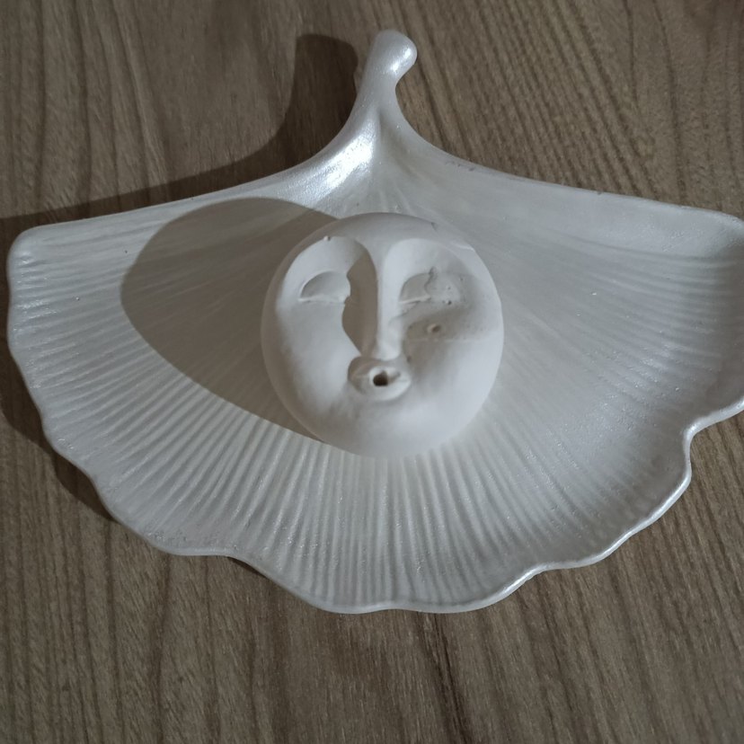 Beyaz , yüz figürlü, kabuk şedekoratif obje.
