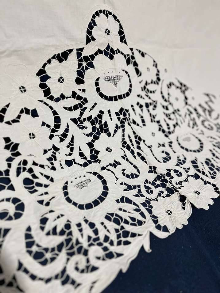 Komple delik işi olan en 2metre boyu 81 sntm olup poplin kumaş üzerine titizlik ile işlenmiştir kumaşın kendi dokumasında çok hafif kabartı mevcuttur harika bir elişçiliği olup bu kadar ağır bulmak zordur alana hayırlı olsun