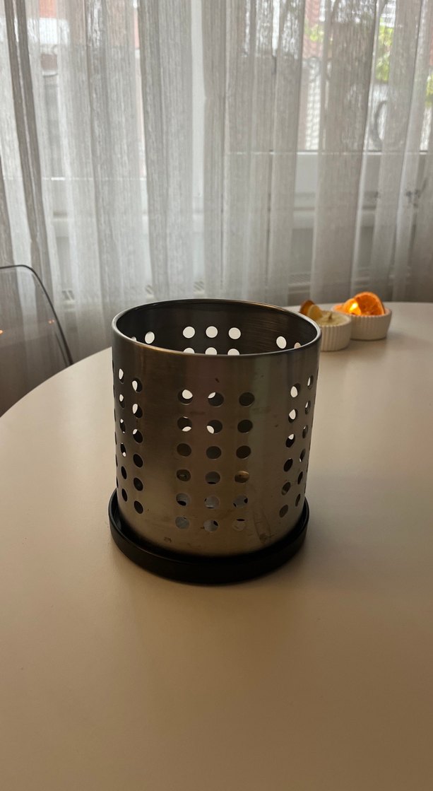 Delikli yanlarıyla havalandırmalı, sağlam tabanlı gri metal mutfak kaşıklığıdır.