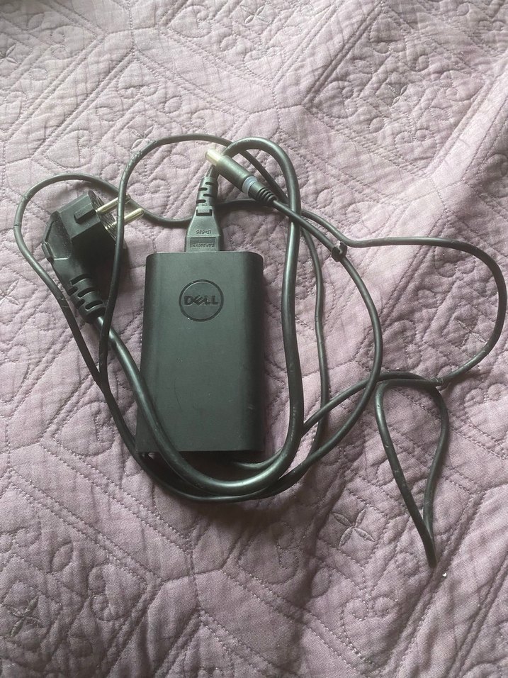 Siyah renkli Dell marka şarj adaptörü ve güç kablosu, dizüstü bilgisayarlar için uygundur. Standart fiş ve bağlantı içerir. İade kabul etmiyorum