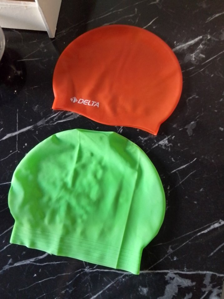 DELTA markalı yüzme boneleri, turuncu ve yeşil canlı renklerde, sade ve düzgün yapıda, vücuda oturan tasarıma sahiptir. ♂️nar cıcek renk yeni kulanılmıs yeşil az kullanıldı sorunsuz