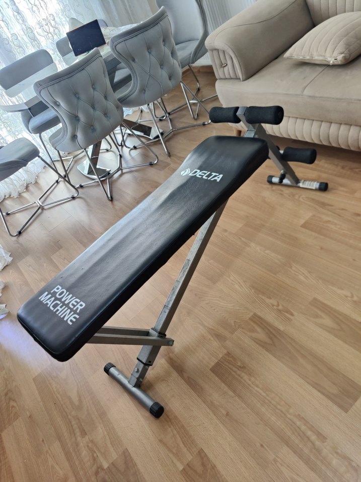 Ayarlanabilir, siyah yastıklı yüzeye ve sağlam metal iskelete sahip egzersiz sehpası, farklı antrenmanlar için uygundur. ️