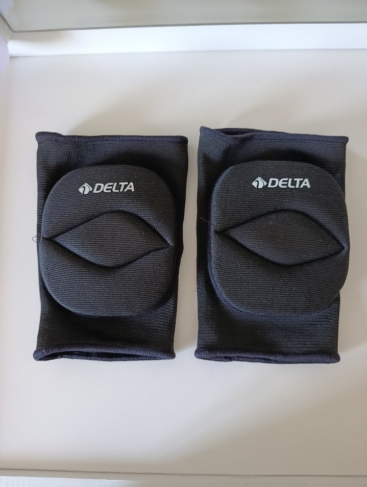 Delta logosu ile siyah, baskılı, elastik yapılı ve yumuşak fleece astarlı motorcu tarzı diz koruyucu. ️