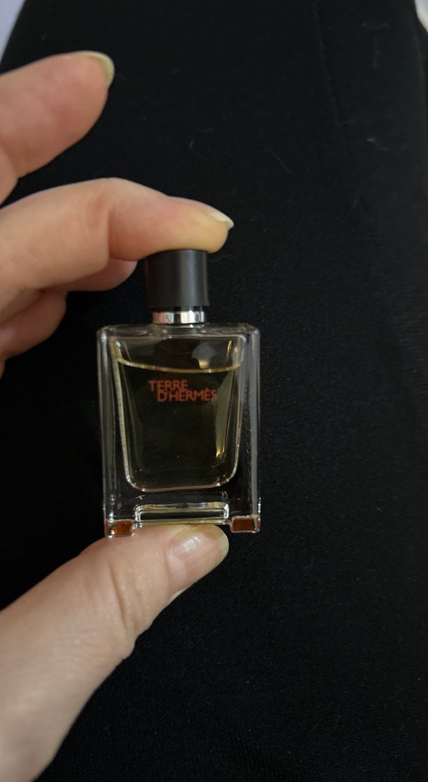 Terre d'Hermès erkek parfümü, koyu bej renkte sıvı ve minimalist şeffaf cam şişeye sahiptir. Sade tasarımı karşıt kültür tarzını yansıtır.