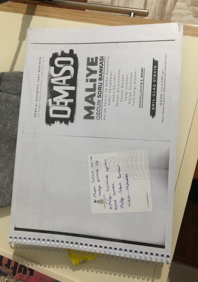 Demaso Maliye özgün sorular içeren, spiral ciltli sınav hazırlık kitabı. Ana konuları ve alıştırmaları kapsar. Pdf