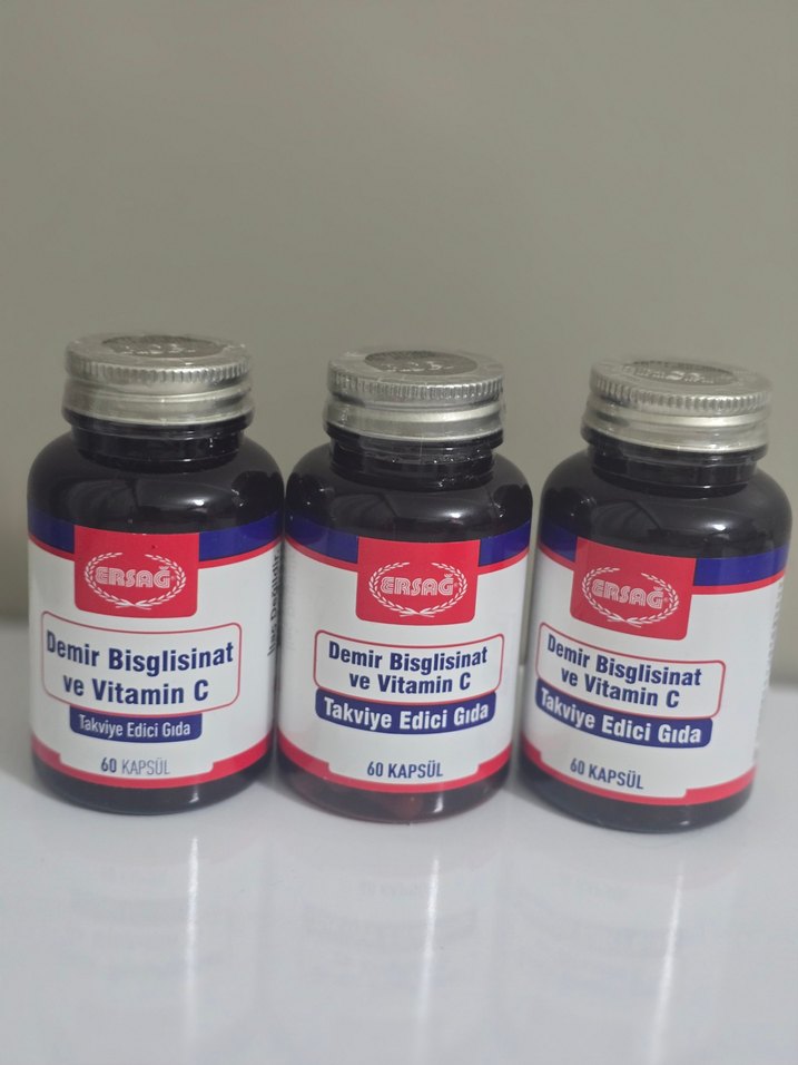 60 kapsüllük Demir Bisglisinat ve Vitamin C takviye edici gıda, beslenme desteği sağlar. #ersağdemir #ersağdemirbisiglinat