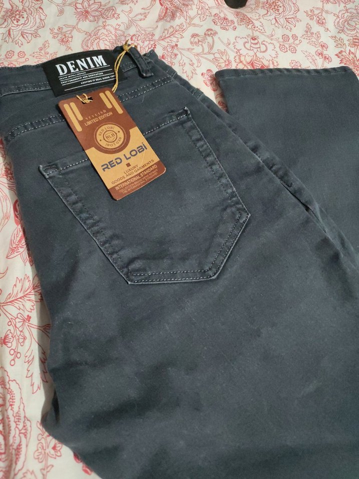 Gri renkli, regular fit denim erkek pantolon, günlük rahat sokak stili için uygundur.