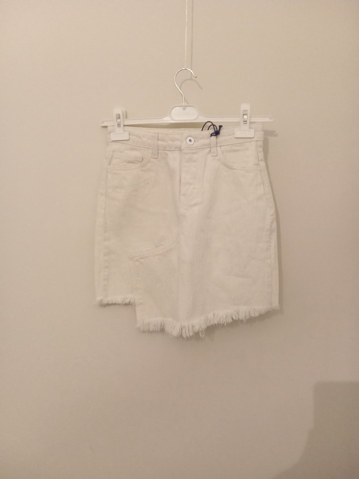 DENİM PAMUKLU ETEK. BEL 35 CM DİR BOY ARKADAN 41 ÖN Uzun KISMI 44 CM DİR.