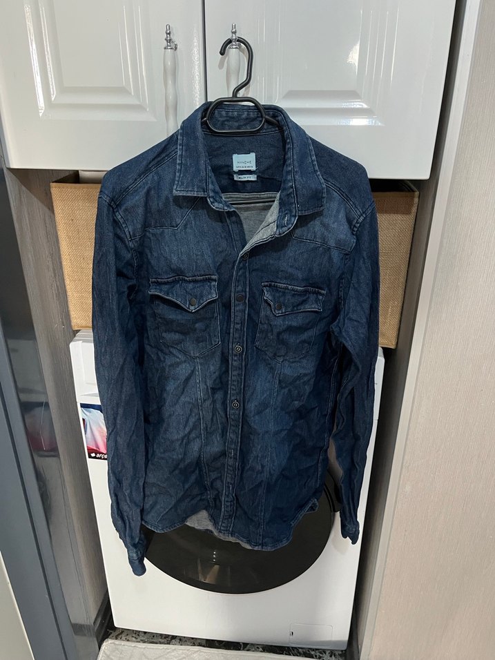 Gömlek reyonundan almıştım ama ben ceket şeklinde kullandım Bir düğmesi kopmuş fotoğrafta gözüküyor ama altta fazladan 1 düğme mevcut onun yerine dikilebilir. M-L uyumlu Bol sevilirse S beden de uyumlu olur