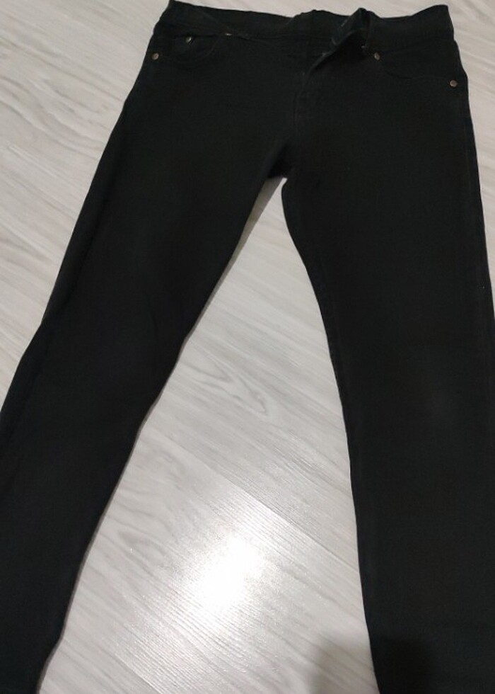 Denim klasik siyah pantolon paçası çok dar değil