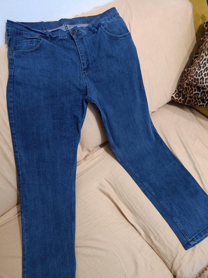 Mavi renkli normal boyda denim pantolon. Günlük kullanıma uygun, rahat ve şık bir sokak stili ürünü. bel 50 cm boy 106 cm