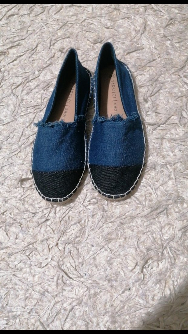 Ölçüleri gorselde Lacivert denim Espada iller batik desenli. Günlük kullanım için rahat, bohem ve şık bir tasarıma sahip. Kot bez 38 beden yazıyor ama kalıbı biraz dar 37 ile 37.5 numara ya uyar Hiç kullanılmadı sorunsız yeni etiketli Beden olmadığı için satışta Renk lacivert ve siyah Lütfen indirim istemeyiniz