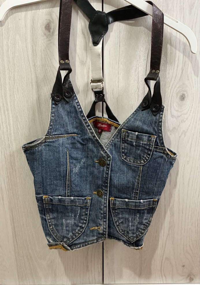 denim top yelek y2k kisa deri strap