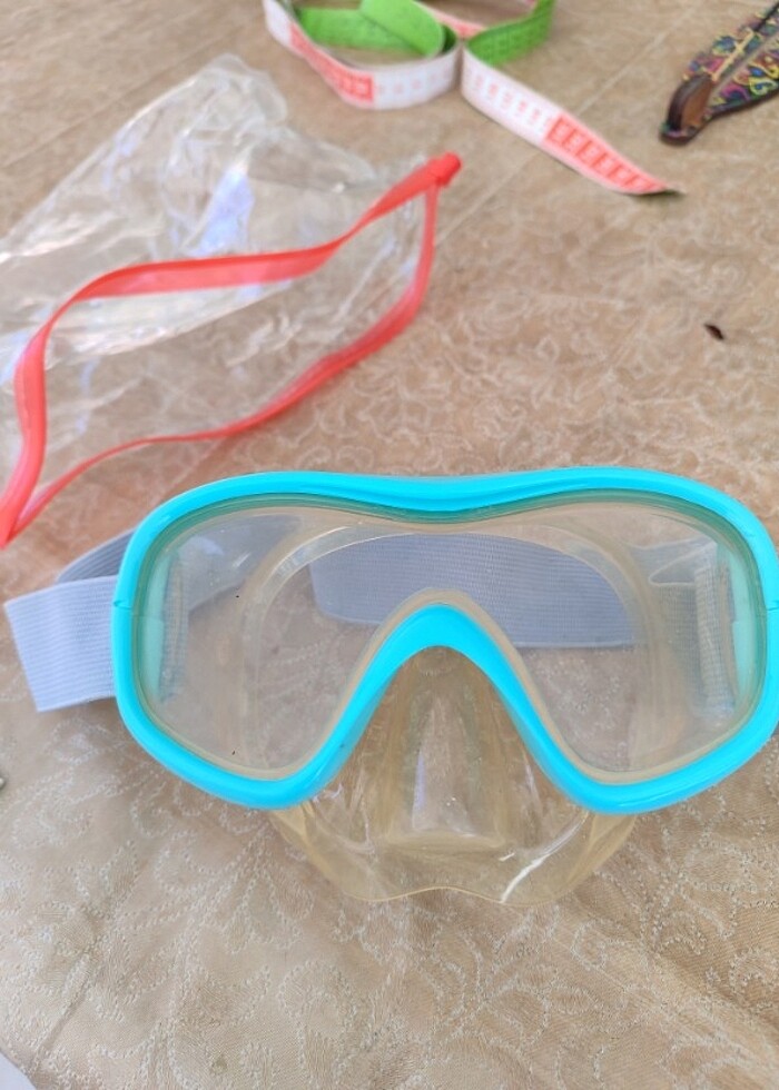 DENİZ GÖZLÜĞÜ HİÇ KULLANMADIM POŞETLİ HENÜZ YEŞİL BEYAZ RENKLERDE BOY 15 CM EN 8 CM AŞKI BOYU 45 CM APARATLI DARALTILIP GENİŞLETİLİR
