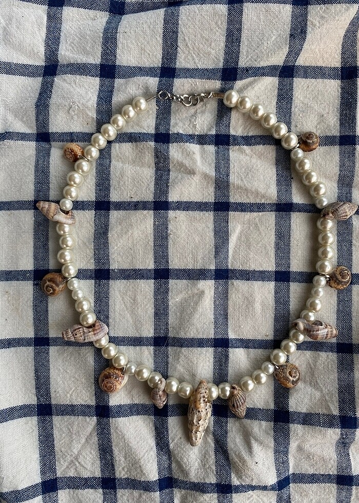 Deniz kabuklu incili kaleti Yaz kolyesi