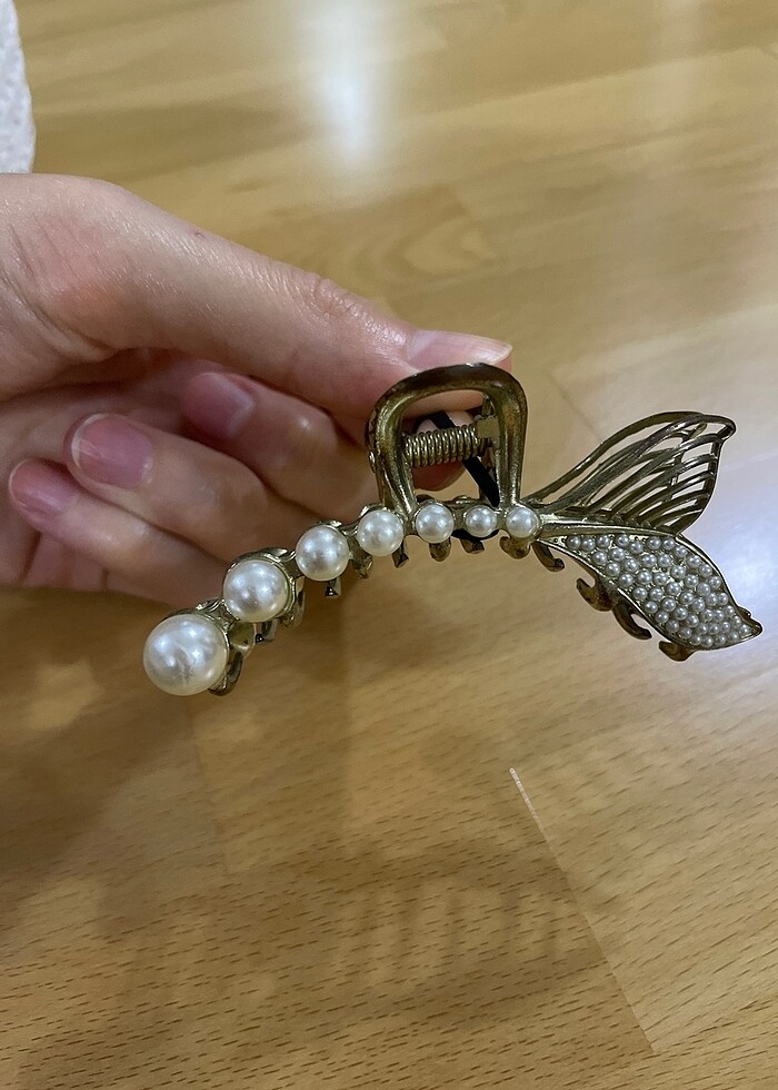 Deniz kızı kuyruğu mandal toka incili gold