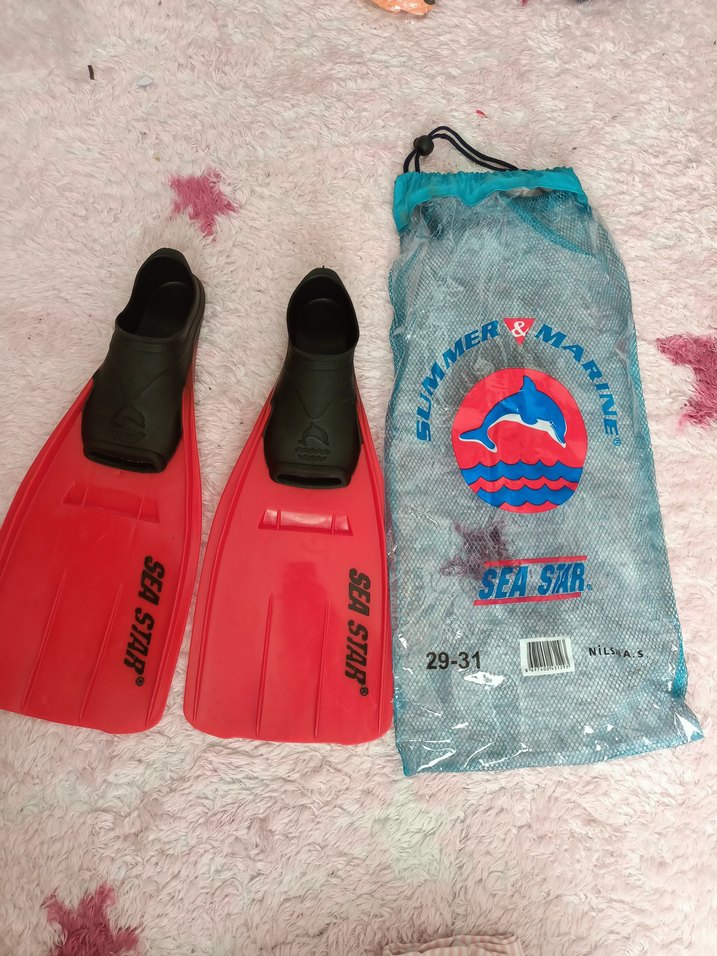 29-31 numara, SEASTAR markalı renkli kırmızı deniz paletleri, su sporları için uygundur. havuzda derste kısa süre kullanıldı