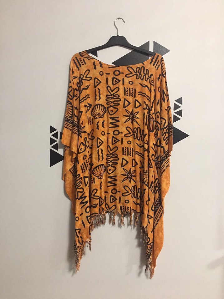 Plaj kıyafeti. Tunik. Etnik otantik bluz. Elbise. Summer beach cover up. Ürün sadece 1 kez kullanılmıştır. Yıkanmış temiz durumdadır. Etiketi bulunmamaktadır. Oversize. S M L XL bedenlere olur. Geçen senenin güncel fiyatını fotoğraflarda görebilirsiniz. Üstte duruşu benzer ürün olarak fotoğraflara eklenmiştir. Ürün turuncudur. Soğuk suda elde yıkandığı taktirde hiçbir bozulma söz konusu olmayacak ince tiril tiril yazlık bir üründür. Rayon kumaş diye geçiyor. Fiyat sondur. Hemen kargolanır. #etnik #otantik #vintage #retro #yaz #deniz #plaj #sahil #plajkıyafeti #elbise #etiket #tunik #etnikgiyim #yoga #turuncu #summer #beach #beachcoverup #summerbeachcoverup #oversize
