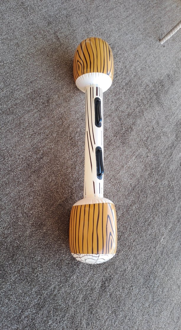 Bej taban üzerine renkli desenler ve iki siyah tutacağı olan deniz simidi