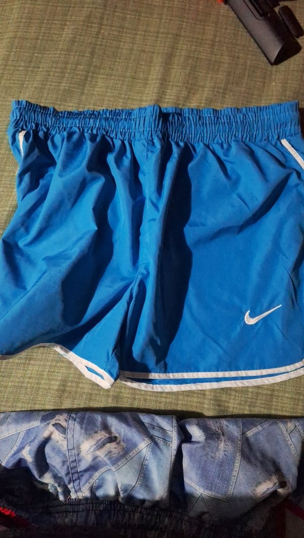 Mavi Nike spor şort, parlak dokusu ve elastik beliyle spor aktiviteleri için rahat bir kullanım sunar.bayan icin ikili fiyatidir