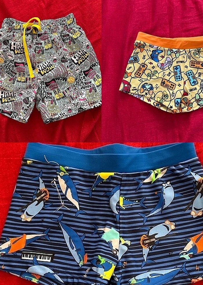 Lacivert ve sarı 4-5 yaş diğer şort 3-4 yaş hepsi penti üçlü fiyattır tek alımda yapılabilir