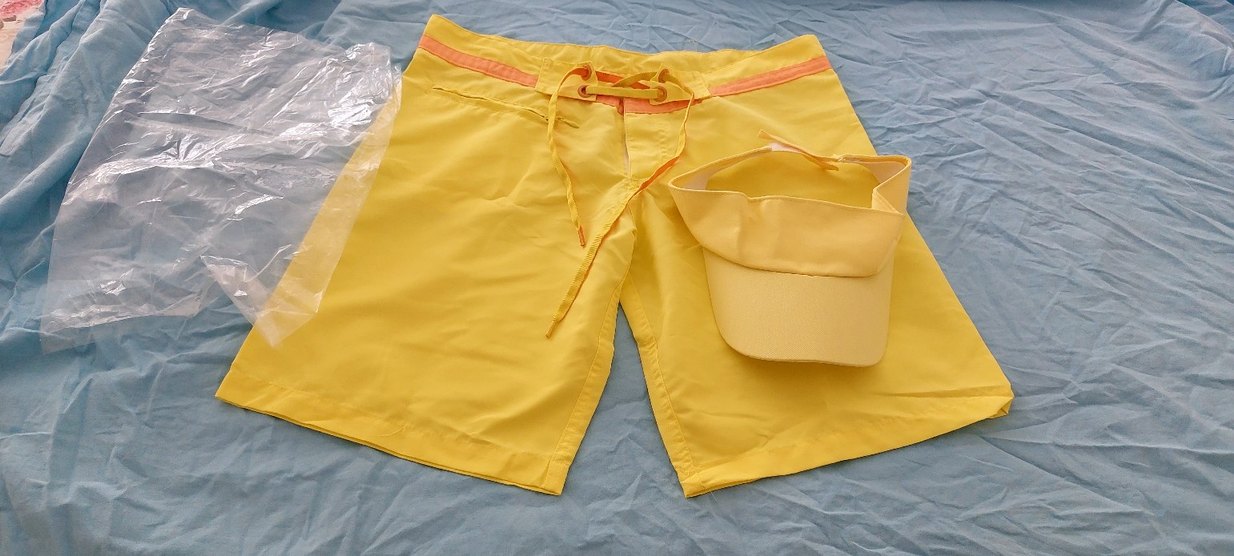 deniz şortu ve plaj şapkası
