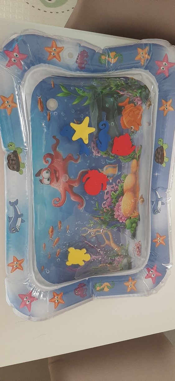 Deniz temalı, deniz canlıları ve denizyıldızları desenli açık kahverengi bebek yürüteci. Bebeklerin güvenle oynaması için tasarlanmıştır.