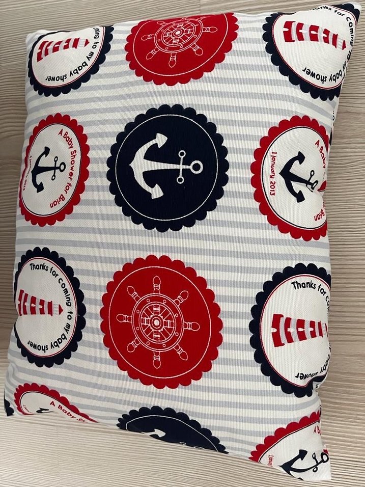kırmızı, lacivert ve beyaz deniz temalı baskılarla bohem tarzda çok renkli kırlent. ⚓