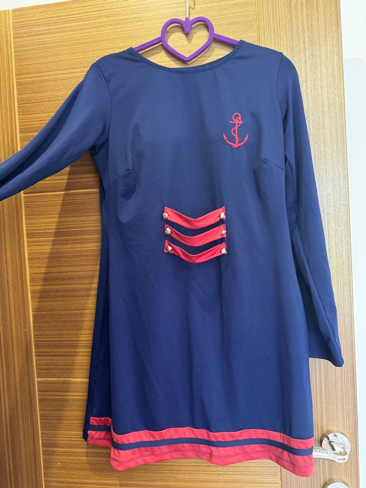 ⚓ Tarzıyla fark yaratan, tam tesettüre uygun haşema takımı! 36-42 beden arası uyumlu (Esnek ve rahat kalıplı) 3 parçadan oluşur: 1. Bordo denizci detaylı tunik 2. Tam boy pantolon 3. İç bone Tatil valizinize şıklık katacak sade ama iddialı bir tasarım Boy: 78 cm Göğüs: 45cm
