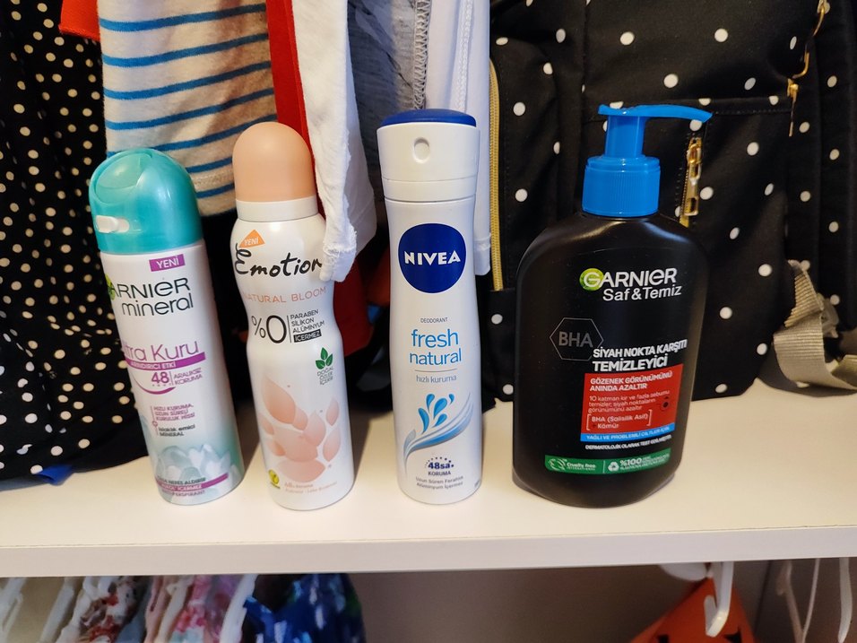Hepsi birlikte satılık. Deodorantların ikisi yarım birinde çeyrek kalmıştır. Rolon kullandığım için satıyorum. Siyah nokta temizleyici hiç kullanılmadı.