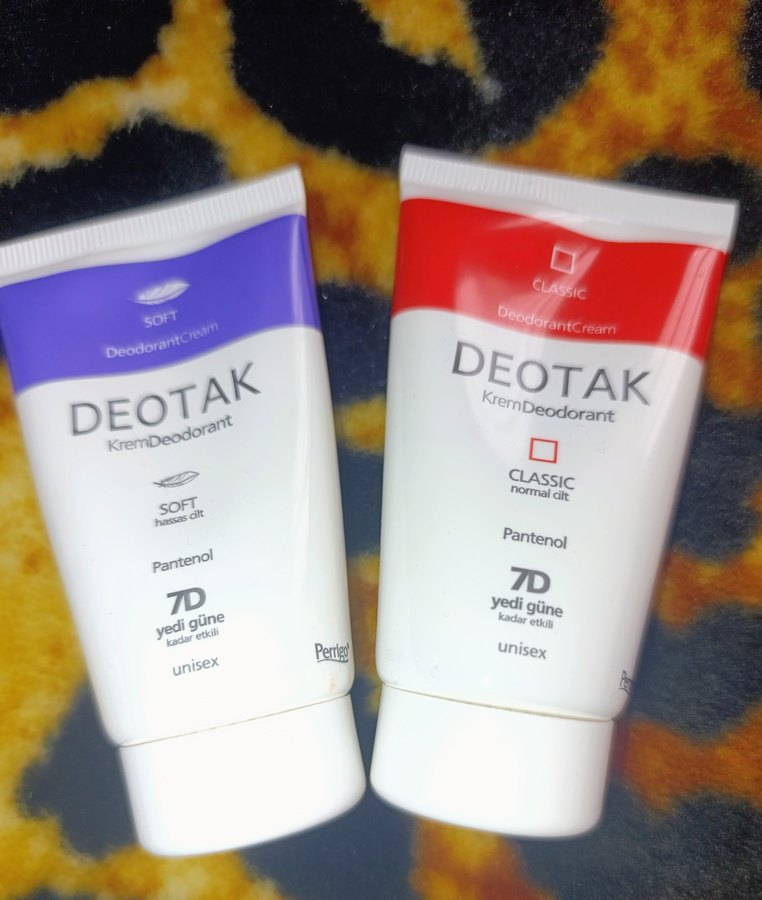 Deotak kadın deodorant krem 35 ml tüplerde, mor ve kırmızı ambalaj seçenekleriyle etkili koku koruması sağlar.