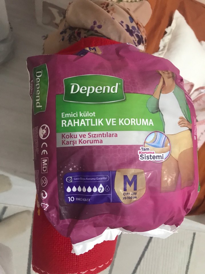 Depend emici külot M bedende, koku ve sızıntılara karşı tam koruma sağlar. 75-100 cm bel ölçüsüne uygun, hiç kullanmadım 1 tanesini açtım baktım 9 tanesi poşetin içinde.